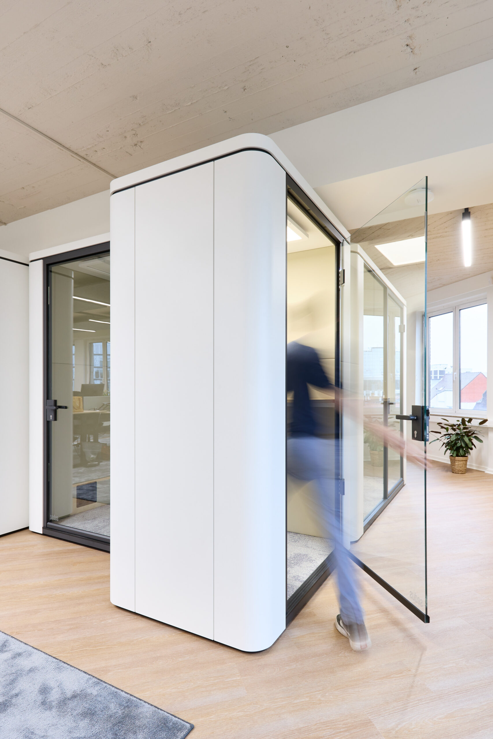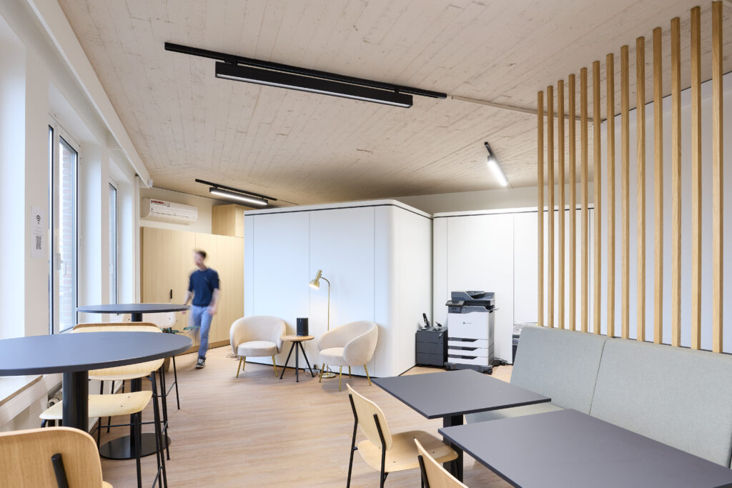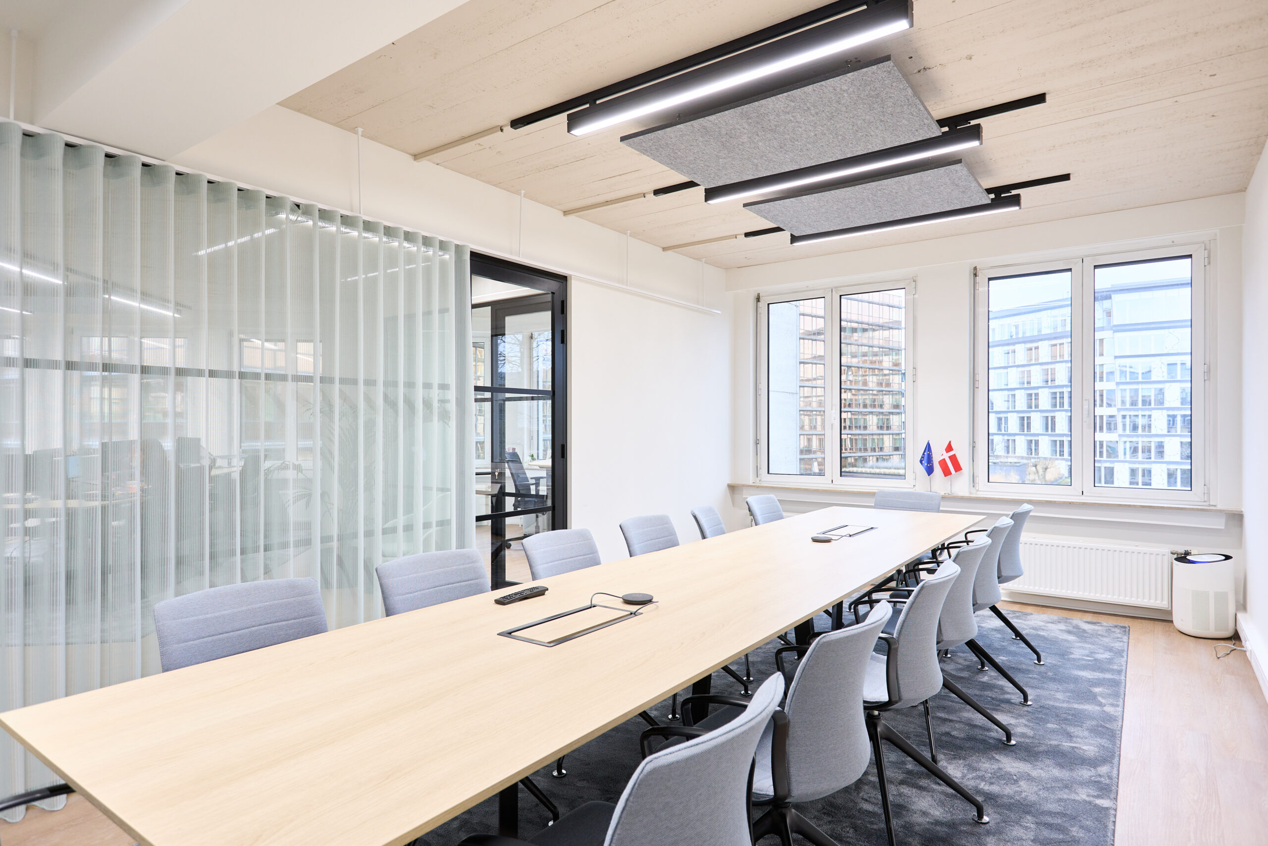 Rasmussen now enjoys an open area for daily tasks, with designated spaces for focused work, informal and formal meetings, and a cozy dining area for coffee breaks with colleagues. Every square meter has been maximized to its fullest potential.