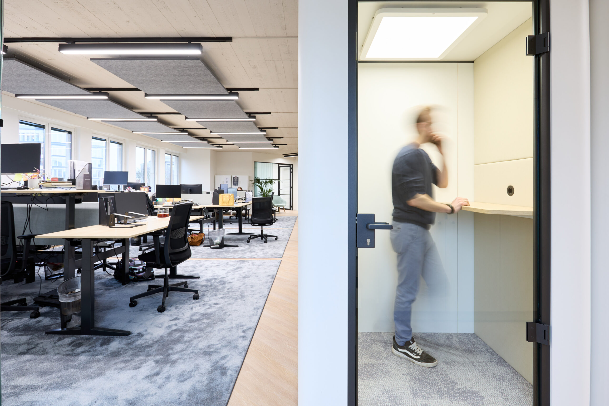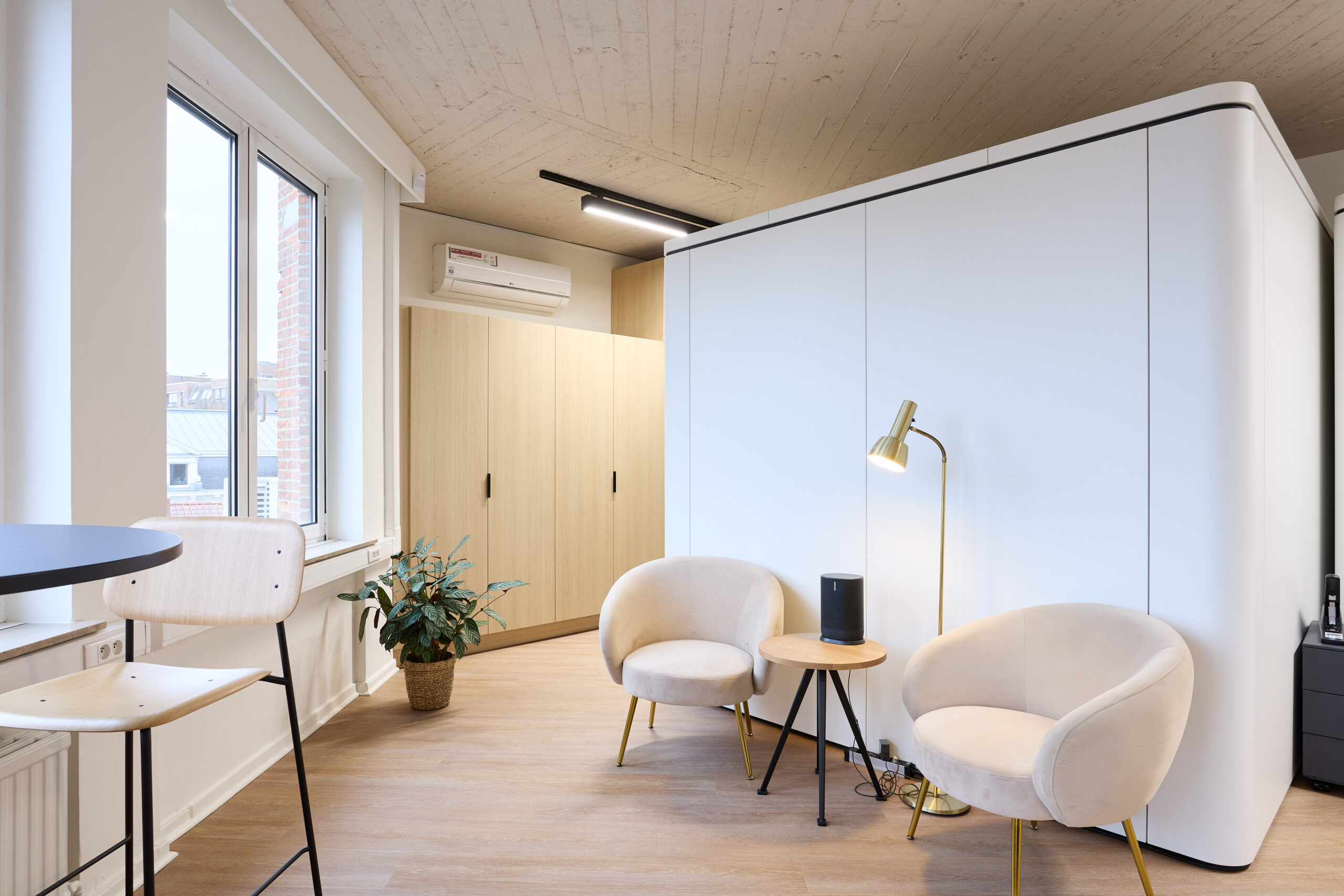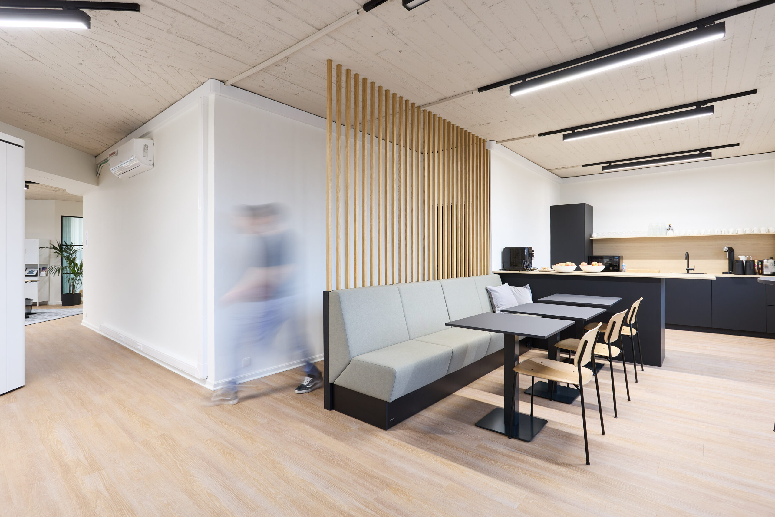 Rasmussen now enjoys an open area for daily tasks, with designated spaces for focused work, informal and formal meetings, and a cozy dining area for coffee breaks with colleagues. Every square meter has been maximized to its fullest potential.